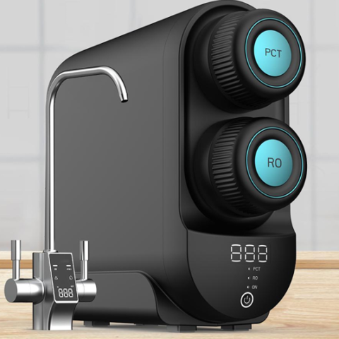 Sistema de ósmosis inversa compacto, eficiente y ecológico, elimina hasta 99,9% de impurezas para agua pura, segura y saludable al instante.